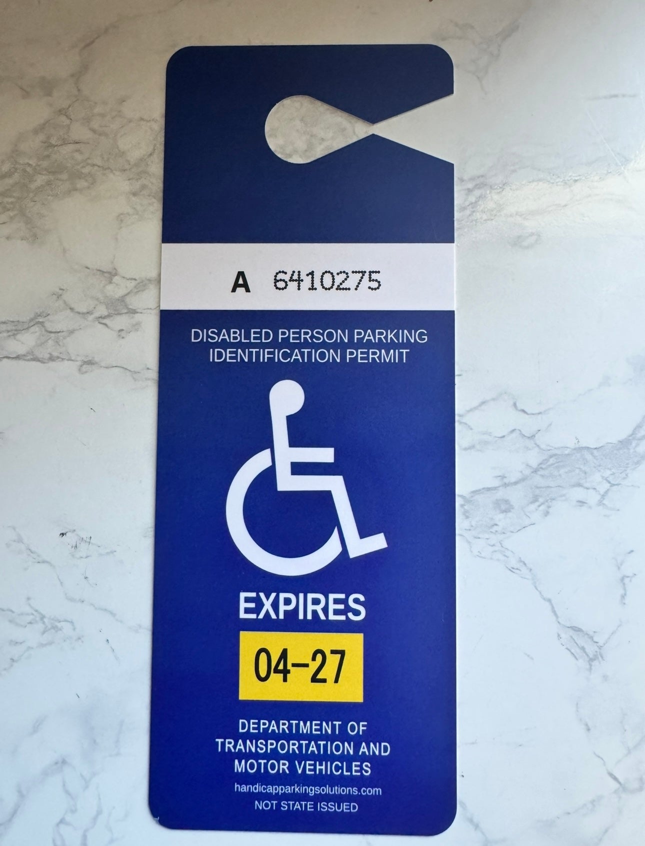 Disabled universal double sided plastic vehicle parking permit handicap placard.